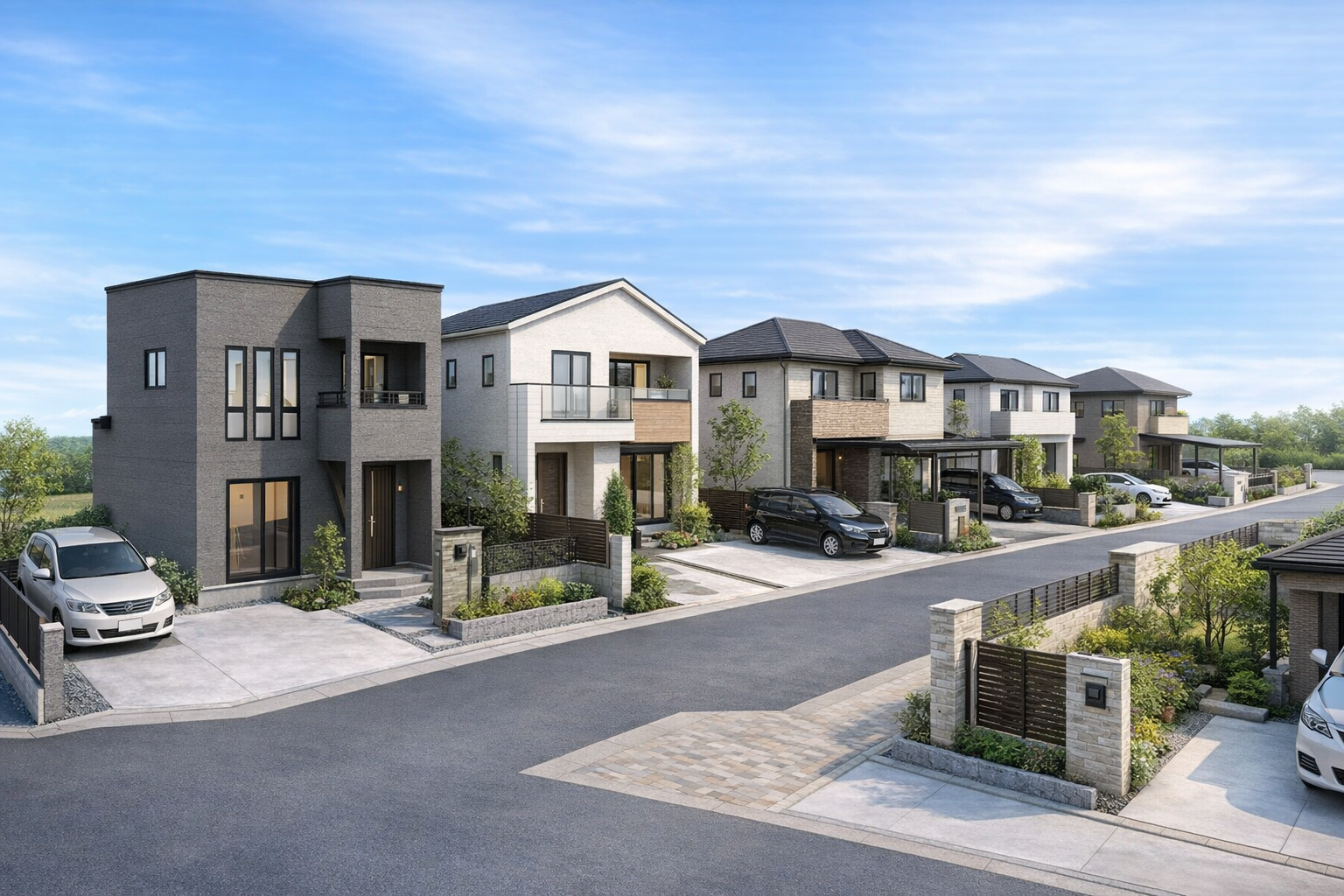 “快適な毎日”を支える暮らしの舞台 家族が毎日を安心して過ごせるように。多治米分譲地では、住まいだけでなく、道路計画や駐車スペース、周辺環境まで含めた「暮らしやすさ」を大切にした街づくりを行っています。
