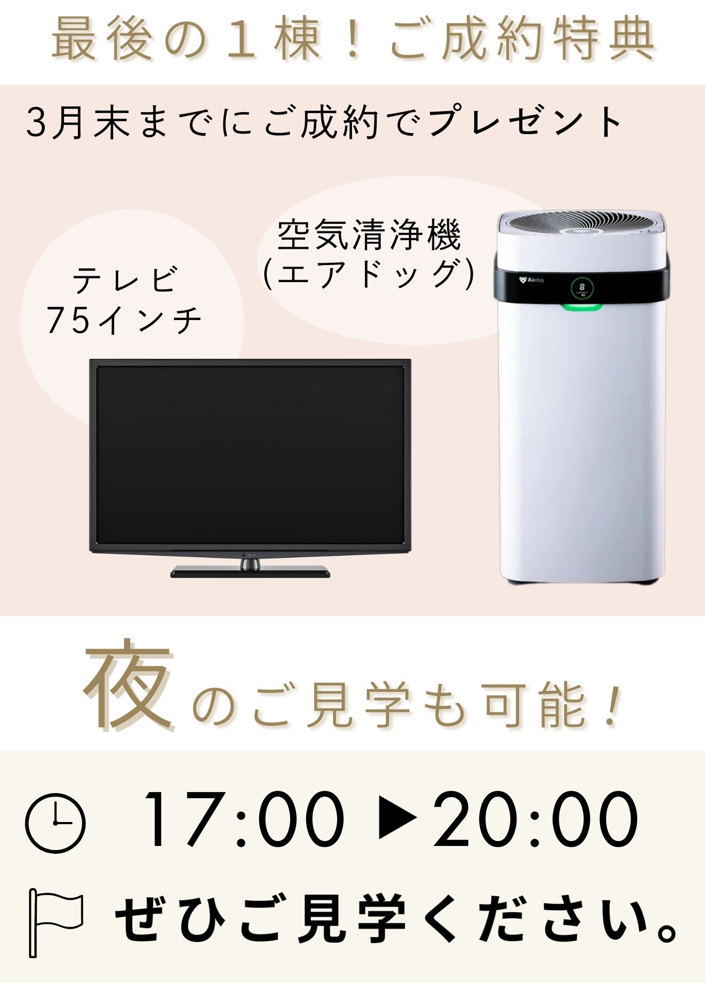ホーム イベント報告 全13区画完売!分譲地内最後の1邸 完成住宅販売会 ◆終了しました 全13区画完売!分譲地内最後の1邸 完成住宅販売会 日時:3月21日(土)~3月22日(日) 10:00~20:00場所:尾道市門田町竜王台38 お申し込み ▽▼もっと事例が見たい方におすすめ▽▼ 写真や間取りを多数掲載!人気のカタログを無料プレゼント実施中♪ ▼▼バナーをクリックして詳細を確認▼▼ ▼▼特別価格にてモデルハウス販売中!▼▼ ▼▼気になる分譲地情報はこちら!▼▼
