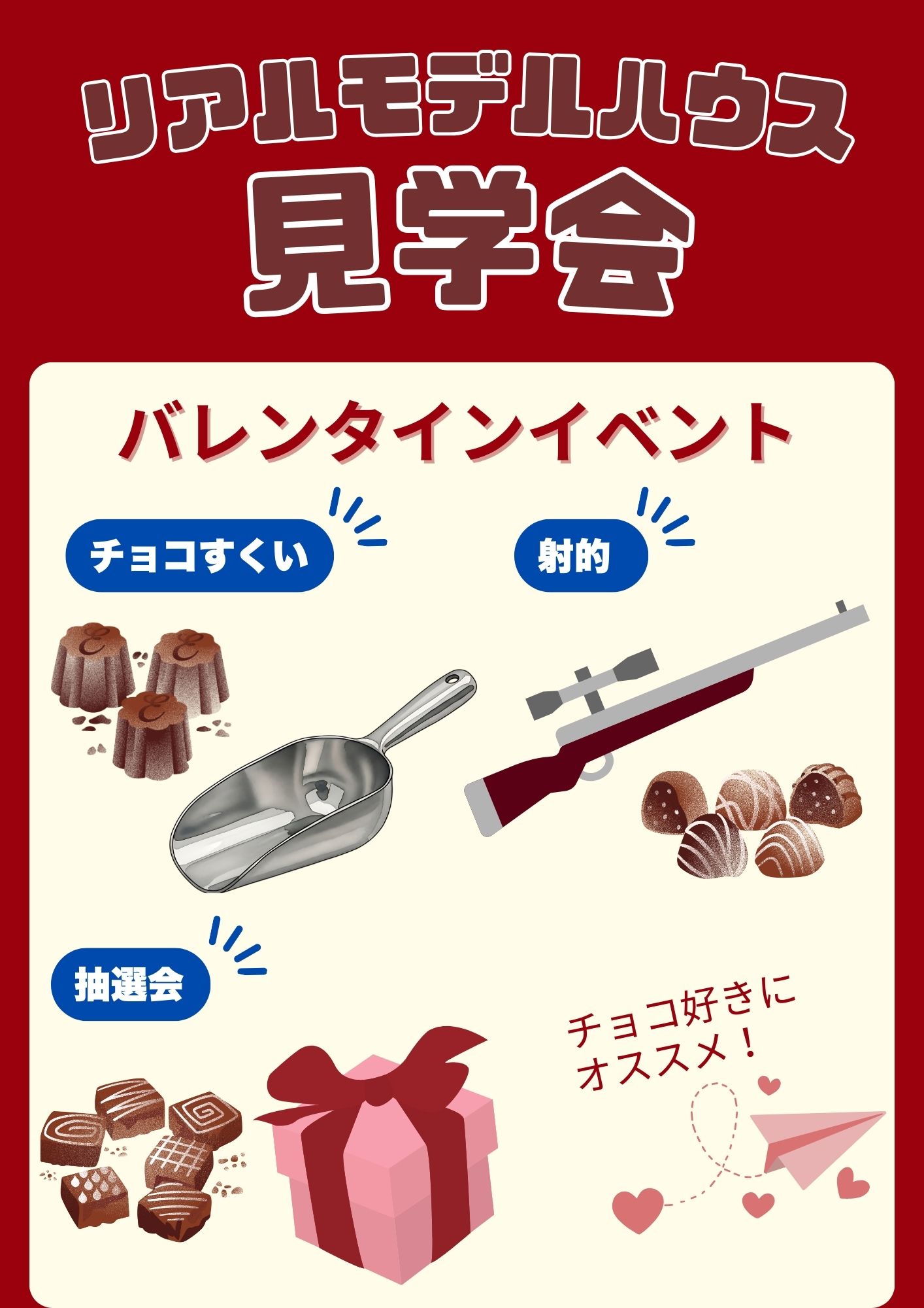ホーム イベント報告 バレンタイン!リアルモデルハウス見学会 ◆終了しました バレンタイン!リアルモデルハウス見学会 日時:2月14日(土)・15日(日) 10:00~17:00場所:福山市神辺町新道上1-7-1 「さんわの家」福山展示場 お申し込み ▽▼もっと事例が見たい方におすすめ▽▼ 写真や間取りを多数掲載!人気のカタログを無料プレゼント実施中♪ ▼▼バナーをクリックして詳細を確認▼▼ ▼▼特別価格にてモデルハウス販売中!▼▼ ▼▼気になる分譲地情報はこちら!▼▼