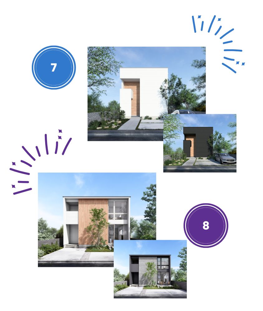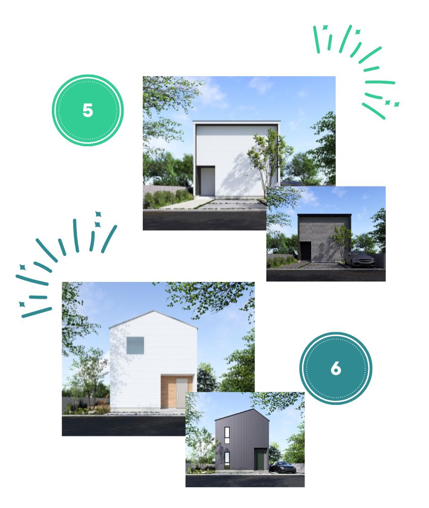 プロのデザイナーが手掛けた外観は、どれを選んでも美しく決まる高い完成度を誇ります。無駄のないシルエットや素材の質感、色の組み合わせまで細部にこだわり、上質なモダンスタイルを実現しています。流行に左右されず、いつまでも飽きのこないデザインで、見るたびに誇らしく感じられる住まいを叶えます。